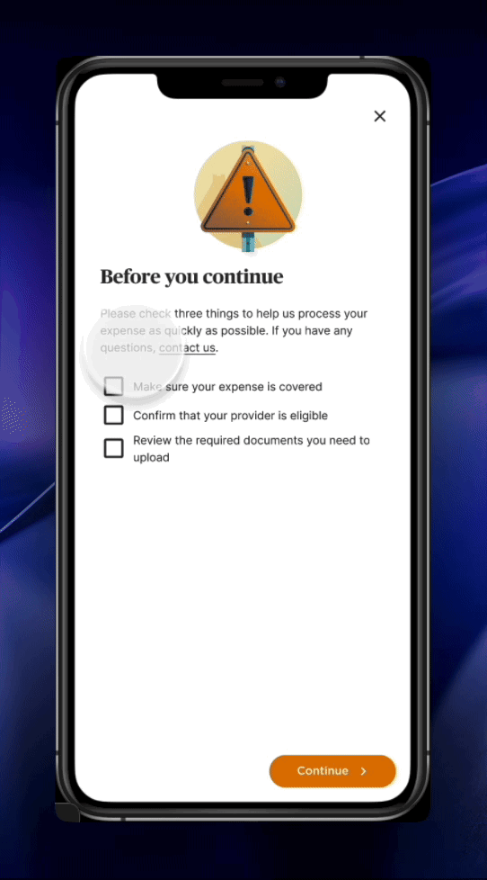 Starting off with reducing poorly member submitted claims, I worked with a content designer in creating a preventative barrier for submitted incorrect claims at the beginning of the member reimbursement flow.